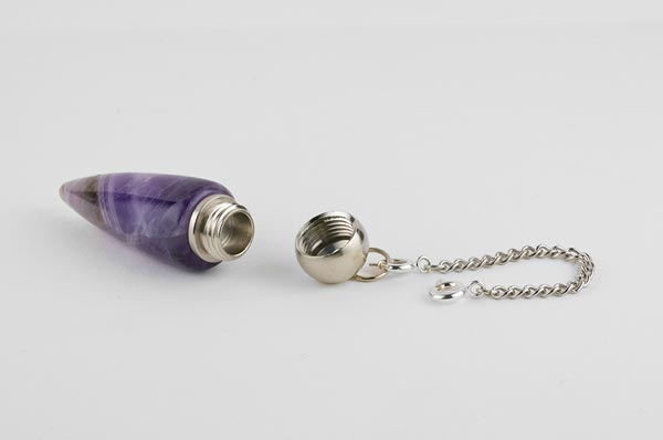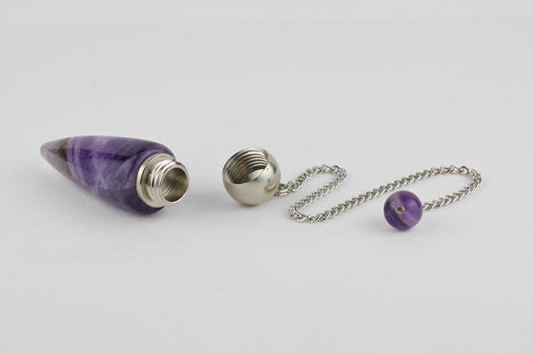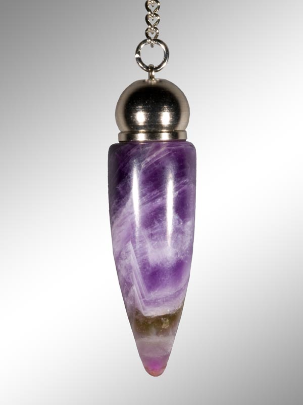 This amethyst pendulum has a 5-inch curb chain with an amethyst bead on the end.